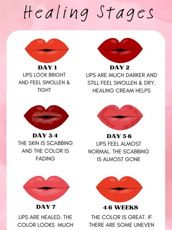 - Days 8 to 14: Lips begin to soften, and the true color emerges.